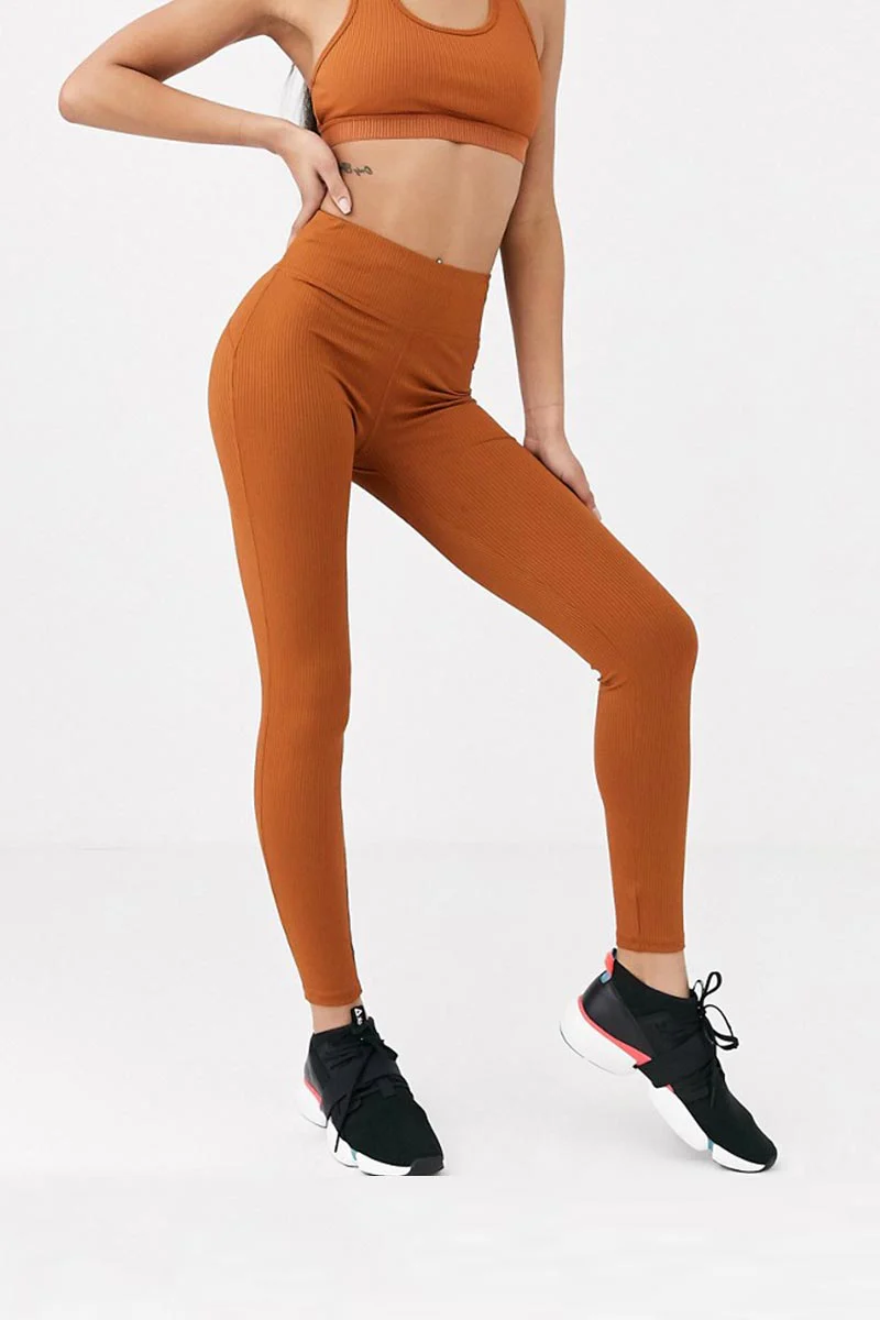 Ignite your workouts with the warm energy of Ambre Sportif. Designed in a striking amber tone, these leggings combine sleek style with high-performance comfort. The ribbed texture enhances breathability while the supportive high-rise waistband ensures a secure, flattering fit through every movement.